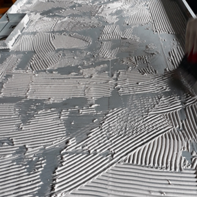 질석보드 위 접착제 바르기